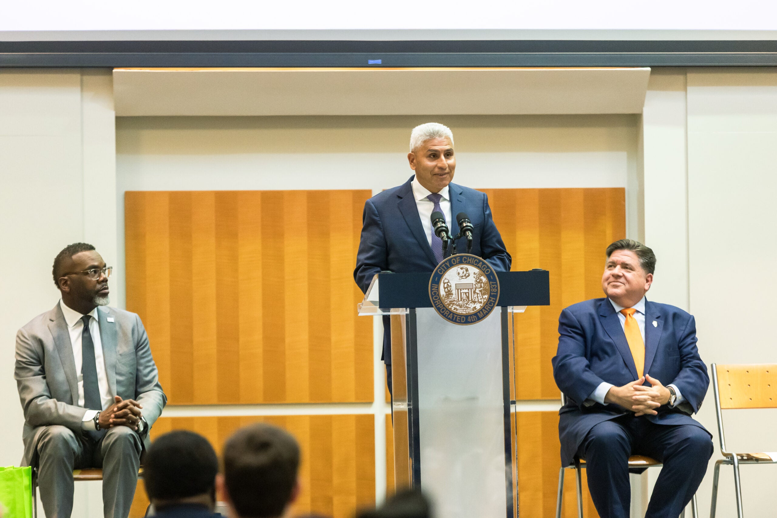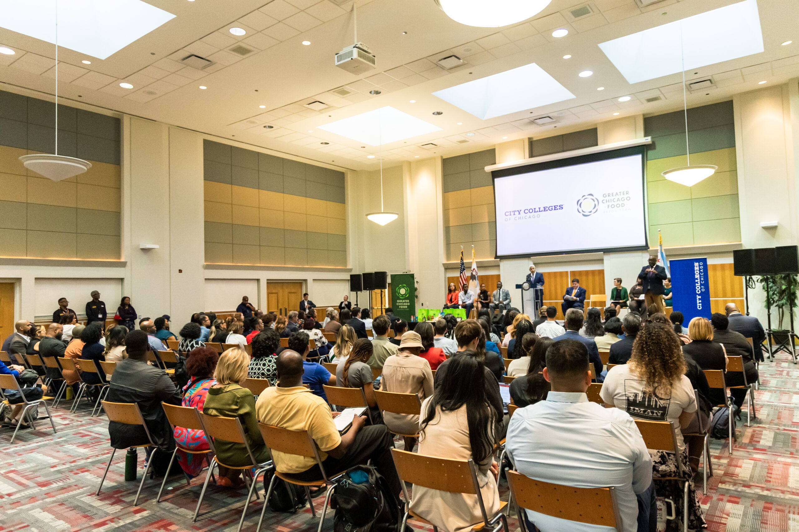 The announcement took place on Tuesday, September 30 in the Great Hall of Kennedy-King College. Click here to watch the recording.