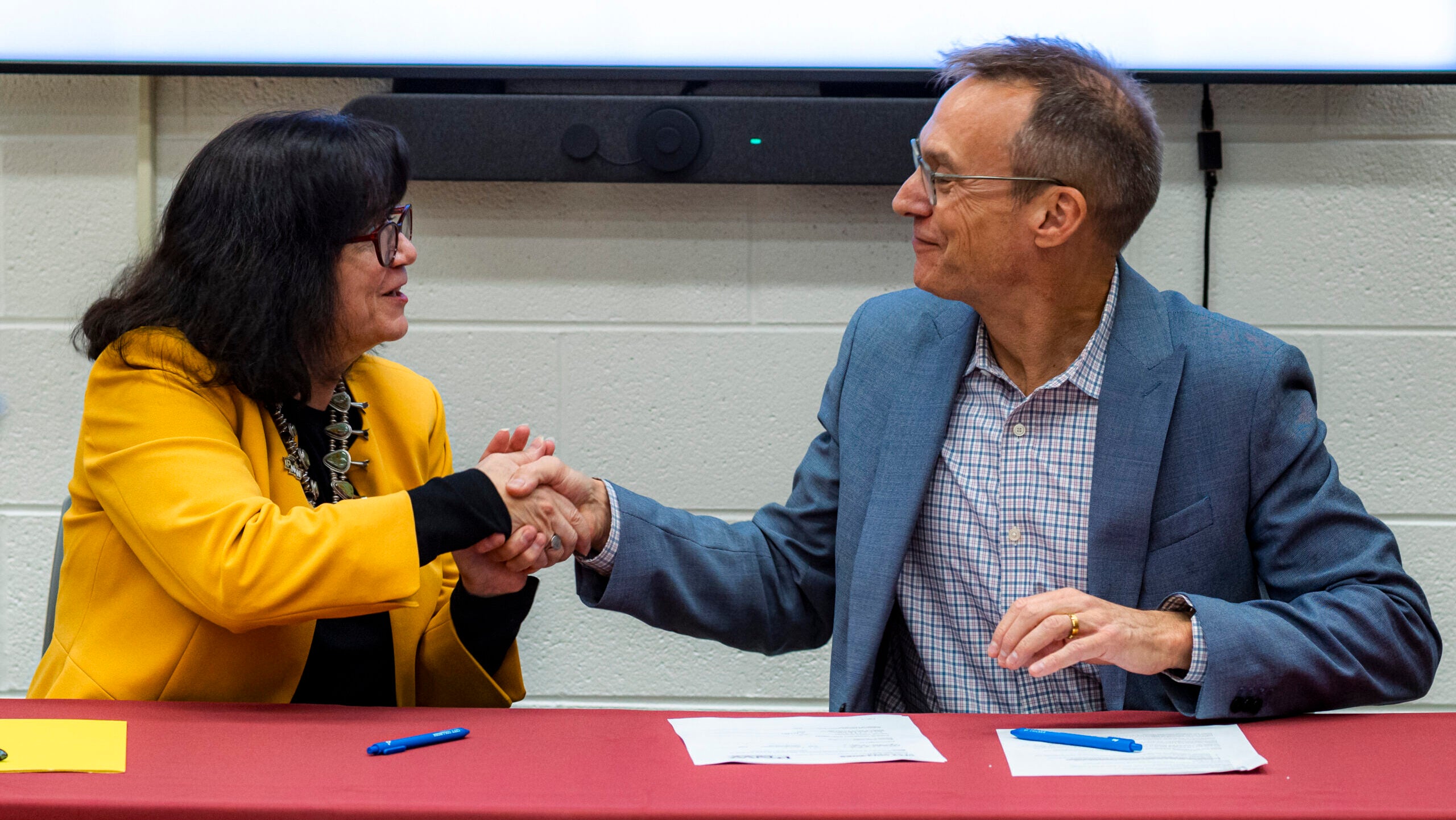 Dr. Marie T. Mora., Provost and Vice Chancellor for Academic Affairs, Purdue Univ. Northwest and Provost and Chief Academic Officer Mark Potter, City Colleges of Chicago sign an MOU that will ensure their students don’t lose credits, time, or money as they seek higher degrees in Construction Management.
